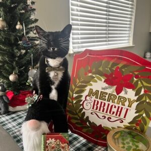 One of the first cats I saw was a handsome tuxedo who started rubbing against the glass when I walked by, hoping for attention. His name tag read “Gilligan.” After circling the room and looking at all the cats, I couldn’t get Gilligan out of my mind, so I asked one of the shelter workers if I could meet him. They put us in a small introduction area, and I could see how curious, friendly, and sweet he was. He’d wander around the room poking at every little thing, then, he’d take a break to come sit on my lap and purr like an engine. After about 10 minutes, I knew he was the one.